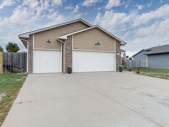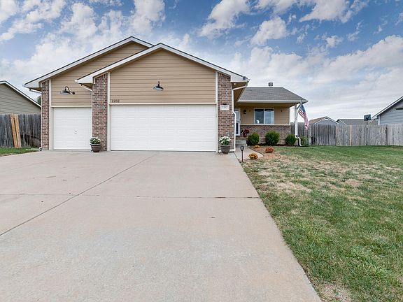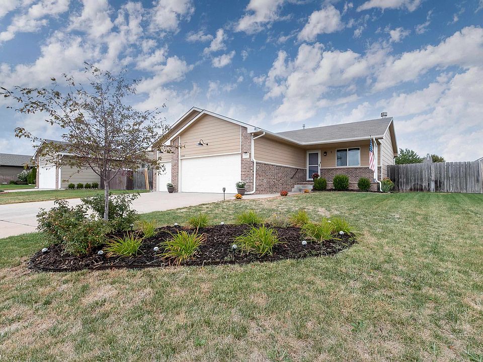 Welcome home! This updated home on a 1/4 acre lot in Goddard School District has a three car insulated garage, 3 bedrooms, 2 bathrooms and a spacious open family room and bonus room. Do not miss the HE/SHE SHED with a utility space on one side and finished room on the other side, with heat and air unit! The large concrete patio (12x26) extends nearly the length of the house and next to the 3rd car garage is a 12x36 concrete slab with 50AMP electrical hook-up (220V) ready for an RV! There is also an in ground sprinkler system, and a large fully fenced back yard. As you walk in this home you will notice the neutral tones throughout. The main level includes LVP flooring, a gas fireplace, pantry and granite countertops in the kitchen! The roof was replaced in 2012, central electric A/C replaced in 2018, and gas water tank replaced in 2019. This home is a must see!