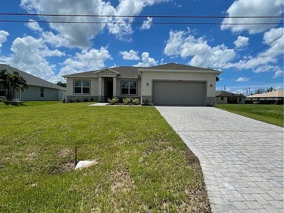 BRAND NEW CONSTRUCTION with builder warranty in highly desired Southwest Cape Coral. 3 bedrooms + Den/Office, 2 bathrooms, 2 car garage. 1668 sq. ft. under air with 9'4" ceilings throughout. Tile in every room. Granite countertops with matching backsplash in the kitchen and both bathrooms. Stainless steel appliances. Large walk-in pantry. Master bath has dual sinks, a ceramic tile shower, and a walk-in closet. All with plenty of room. Indoor laundry room. Brick pavers in the driveway, walkway, and lanai with brick accents on the front of the house. Professional landscape package. It's a Must See. Storm Shutters included. MOVE-IN READY!