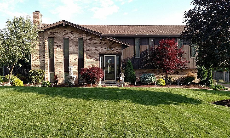 Beautifully landscaped, updated 3 bedroom 2 bath with pool and beautiful multi-level composite deck with large patio below; fully finished and converted 2 car garage to apartment-like space with heating and air conditioning and 3 large closed closets (easy conversion if prefer 2 car garage) split entry brick home, large fenced yard with much parking in back in a quiet neighborhood. New carpet in bedrooms with newer wood floors throughout. Full bath with tub/shower upstairs and full bath with shower downstairs plus laundry room. Stainless steel appliances, garbage disposal, washer and dryer in laundry room included. Beautiful newer 15x12 foot composite deck with steps to 9 ft pool deck and 21 ft round pool. Large concrete patio below deck. Fully finished game room with gas fire place. Newer roof, air conditioner, hot water tank, and stainless sink and appliances in kitchen. Fully functional attic space for storage with drop down stairs access. House ventilation attic fan is a real bonus! This can cool the house or remove cooking smoke in minutes with windows open! Custom wood trim throughout entire home around windows and doors with solid wooden doors upstairs. Tons of storage space especially with easily accessible attic! Square footage includes large finished 2 car garage used as living space. Garage doors (electric) still fully functional.