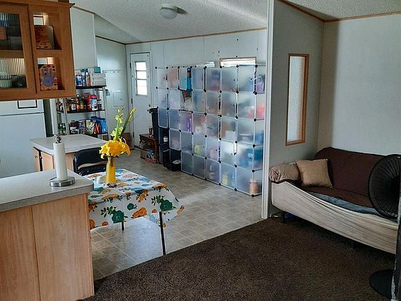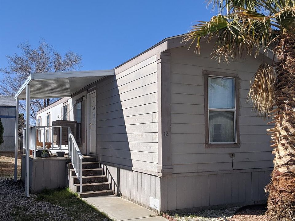 This three bedroom, two bath 912 square foot property is waiting for you to add your final touches. Walking into the property you will be greeted by your open concept kitchen and living room. The kitchen has plenty of storage space and features an island making it easy to prep meals or entertain guests. Continue down the hall to the two bedrooms and guest bathroom, the hallway also features indoor laundry. Washer and Dryer are staying with the home ! As you walk back into the main living space your main bedroom and on suite bathroom are right off the main living area featuring a walk-in closet. The potential is endless with this beautiful quaint home. Located in the Santiago Mobile Home Park.