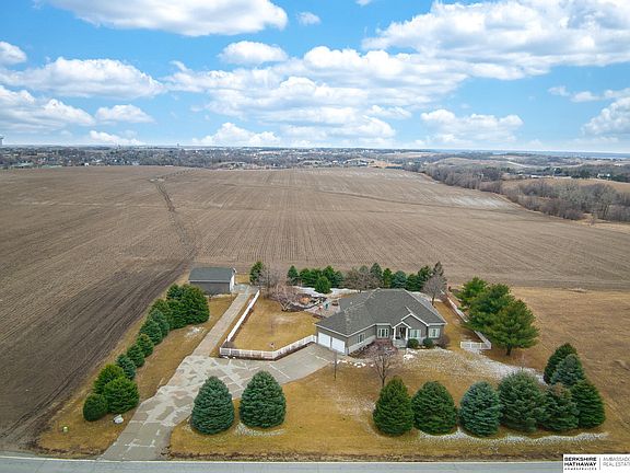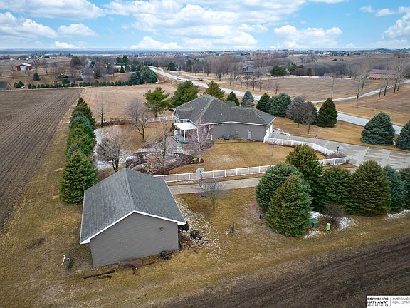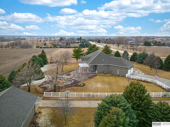 Relax amongst the stars as you listen to the sound of the water as it glides over the rocks of the pond located in the rear of the Gorgeous Gretna acreage. The sound of birds around you amongst the over 35 Blue spruce that were planted when the home was built. 26 x 30 outbuilding ready for your toys and paved driveway brings you in to this acreage from paved roads away from the big city! Sunroom has a propane pass through fireplace into the open living area that overlooks the dining and kitchen area. Solid cherry cabinets line the kitchen and solid surface countertops. Office awaits you off the entry and large primary bathroom with tiles walk in shower and deep whirpool tub to relax in. Call this wonderful 2 x 6 built one owner home who was built by the owner and owners son! Call today to see this beauty in person!