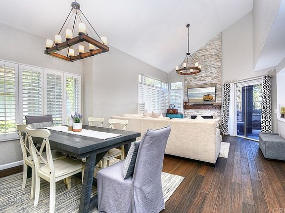 Welcome Home to 22022 Antiqua!!! This well-appointed end unit condo boasts 3 bedrooms, 3 full bathrooms, and approx. 1550 sq ft. As you enter this open floor plan with high vaulted ceilings you will be greeted by new bamboo wood flooring, new custom paint, and a beautiful statement piece fireplace. The light and bright gourmet chef's kitchen has been remodeled and features an oversized kitchen island, all new shaker style kitchen cabinets, stainless steel appliances, glass tile backsplash, and recessed lighting. Also located on the first floor is the living room, dining room, a downstairs bedroom and a full bathroom. The upstairs of this home features an oversized master bedroom with a large private balcony. The master bathroom features dual vanities, a walk-in closet and a separate shower. Also, on the second floor is an additional bedroom and another full bathroom. The home has a direct access 2 car garage that you can access from the kitchen. The home features a private backyard which is perfect for entertaining. Amenities to this desirable community are pool, spa, tennis, membership to the fabulous Lake Mission Viejo within a block from your front door. Enjoy swimming, boating and spectacular summer concerts. Hurry this home won't last!!!