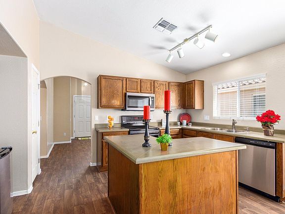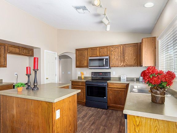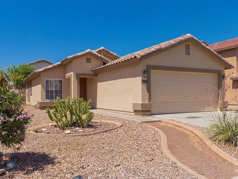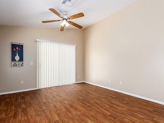 All new flooring, paint and graphite appliances in this classic 3 bedroom, 2 bath home. Beautiful new faux wood flooring in the Living Room, Family Room, Kitchen and walkways. Plush, new neutral carpet in all 3 bedrooms. New graphite range, microwave and dishwasher in the Kitchen. Enjoy a new sink and faucet, too! Plenty of storage with center island and pantry. Open floorplan with dining area flowing into the cheery Family Room. Sliding patio door to covered patio. All new wood & vertical blinds throughout. Master Suite has a full private bath with relaxing tub. 2nd & 3rd bedrooms with mirror closets. Crisp white wood blinds throughout. New exterior paint, too! Located just off I-10 in the beautiful community of Sundance.
