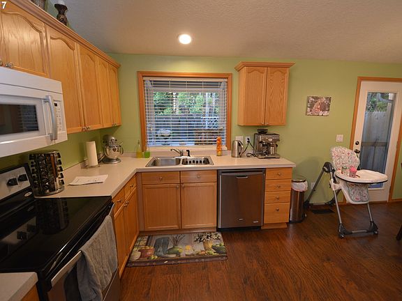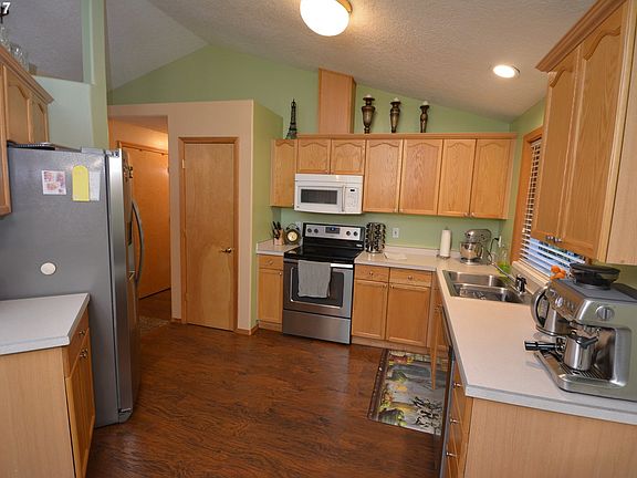This home is a must See! Hardwood and tile floors, open kitchen concept with vaulted ceilings! Gas fireplace with custom stone work. New fresh paint, new appliances! Custom tile bath work. Large fully fenced back yard with covered deck. Two car garage, RV parking on the side home. Air conditioning! No HOA.