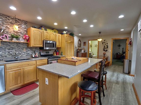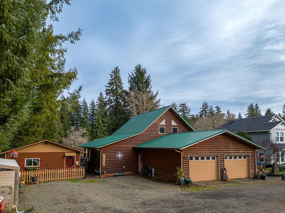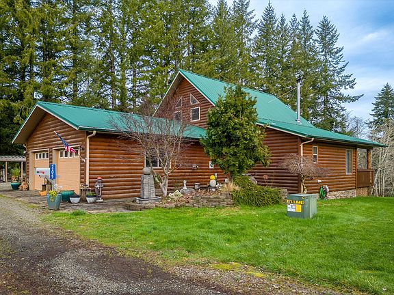 River Front Log Sided Home with small guest cottage on 3.39 acres! NEW composition ROOF on order to be installed soon! Not often are you afforded the opportunity to have your own Log Home, Single Level Living, Attached 2 Car Garage, Guest Cottage, Large Pole Barn, Green House, Chicken Coup, Covered Barbecue Station with patio, RV Hook Up, and Garden Area all at River's edge. The vaulted ceilings provide abundant natural light from the large floor to ceiling wall of windows. The Auxiliary Dwelling Unit is convent for several purposes and has a little court yard, living area, bedroom and bath. If you have every wanted to live off the land with room for toys, a shop, sheds and fishing off the bank with a beautiful house, this is the place for you!