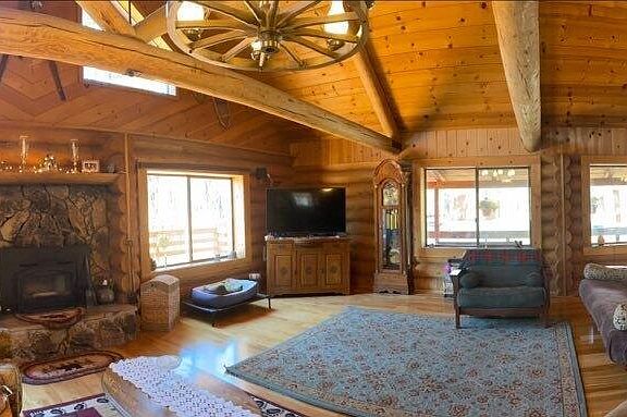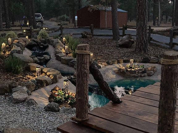 Sellers bought this property 2 years ago and have poured so much love, upgrades and renovations into it. Purchased in fair condition and now gorgeously renovated. With owned solar, this Mountain Residence that dreams are made of is called ''ISLA EN LA CASCADES'' and is nestled in the pines minutes from Burney Falls. This is an incredible water front log cabin residence built like a mini-lodge with both mountain and creek views from your hot tub. The large deck steps down into a private fully fenced lawn with new grass and sprinkler system. The asphalted double circular driveway leads you to your sparkling pond with its own creek, rock waterfall and bridge for viewing off your front deck where you can watch the extensive wildlife experiencing your own landscaped yard.