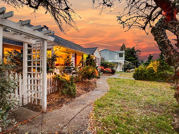 Iconic 1940 one level charmer. Excellent location! Beautiful lush grounds with mature trees and flowers. Secluded large, very quiet courtyard with covered deck, perfect for entertaining. Large bedrooms, cork and maple floors and built-ins throughout the home. Partial views of Guemes Channel. New roof Jan 2018.