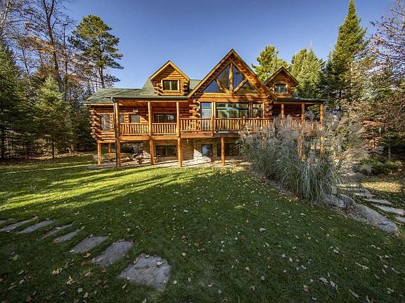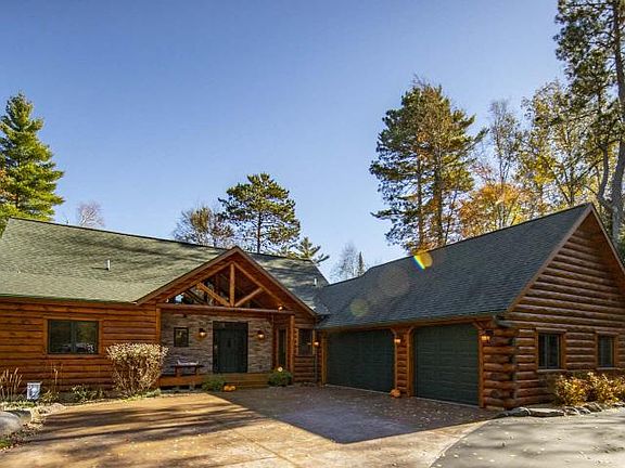 MUSKELLUNGE LAKE MASTERPIECE-STUNNING log-sided home tucked in towering pines w/level frontage on a fully recreational lake! Located between Eagle River & St. Germain, this custom beauty offers; gourmet kitchen w/Sub-Zero/Bosch/Dacor appliances (5 burner gas cook top!), cherry cabinetry, granite, & spacious island snack bar. Soaring cedar ceilings accent the massive log walls & the stone gas FP is complimented by cherry flooring. The views from Pella's finest windows/doors w/interior blinds are spectacular & there's an unobstructed view from exterior to exterior of the home through the loft that is unsurpassed! More; main floor laundry, master suite w/Jacuzzi tub & walk-in shower, extensive decking & lakeside screen porch. The finished walk-out LL offers a dropped cedar ceiling & expansive wet bar. Professionally landscaped w/flagstone walkways, gorgeous shrubbery & perennials, & fire pit area. 3-car att/heated garage, blacktop drive, stamped concrete accents. EXCEPTIONAL! MUST-SEE!