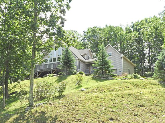 Picture perfect describes this 5 bedroom 3 Full Bath, Fully Furnished home on more than 1/2 acre 0.73 private wooded home site. Beautiful open floor plan, two-stone fireplaces, one on the first floor and one on lower level, floor to ceiling windows in living room, Oversized Trex Deck. Mountain view, master bed with full master bath, lower level with walk out sliders. Kitchenette, All doors and closets are custom. Perfect Mother and Daughter. See Documents for all the upgrades. This is a must see to appreciate! Great Rental Potential.
