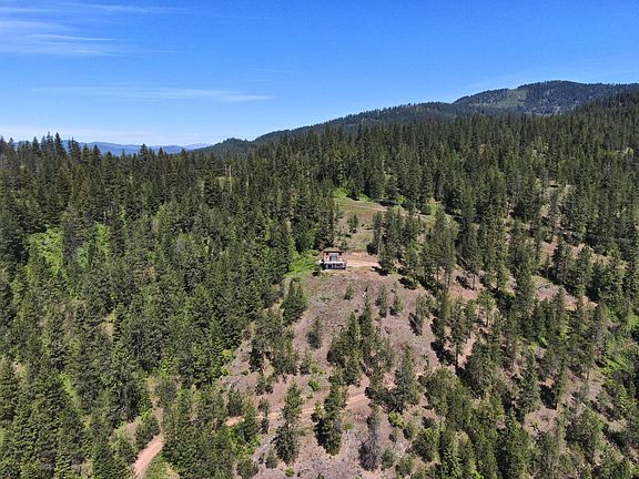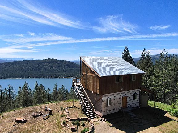 Off grid Mountainside Cabin sitting on 6.99 acres overlooking the Pend Oreille River and surrounding mountains. Neighboring ATV and Jeep trails with hundreds of acres of Timberland next door. This 1 bed loft (non conforming), 1 bath cabin has vaulted t&g ceilings, wood fireplace, leathered granite counters, and wood accents throughout. Sliding glass doors allow you access to the expansive deck that has amazing panoramic views. Large windows throughout flood natural light in every room. Enjoy solar charged with a battery bank and rainfall water catchment system leading into a massive 2280 galloon tank. Private retreat yet only 15 minutes to town of Priest River including shopping, dining, groceries, swimming, etc.