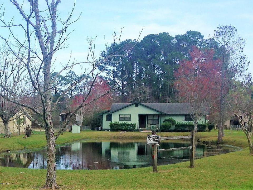 Looking for a secluded home on over a acre of land, well, Here it is!! Enter the fenced, gated property and immediately see the .25+ pond, fully stocked and have fresh caught fish for dinner! Home in great condition, master bedroom and bath, plus guest bedroom and bathroom on opposite side of house. Open layout includes large living/dining room which opens to a roomy kitchen with breakfast bar and walk in pantry with washer/dryer. Oversized attached garage with work space and storage. Niced sized shed in back yard, rear entry garage. Gate has lock and fenced in front and back..