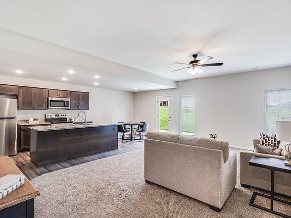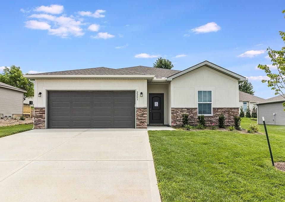 Welcome to the Kamet, a beautiful 3 bedroom, 2 bathroom ranch plan located in Alexander Creek, Raymore’s premier 55+ maintenance provided community. Kitchen is open to the great room and has granite counters and walk in pantry pantry. Low maintenance and easy to clean LVP floors in all the wet areas. Master suite has a large walk in closet in the bedroom and double vanity with granite counter in the bathroom. Guest bathroom also has granite counters. Refrigerator, garage door opener, and full yard sprinkler system are also included. Make this one yours today!