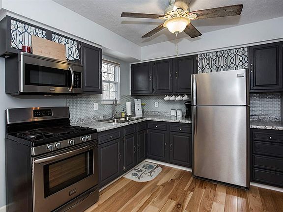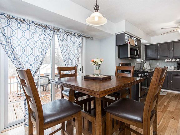 Bike path right in your own back yard! Everything is located on one level and is perfect home for first time home buyers or people looking to downsize. Home has new hickory wood flooring, remodeled bathroom and updated kitchen with new countertops, appliances, and backsplash. Home features a Nest thermostat with smoke and carbon monoxide detecting ability as well as a Moxi bluetooth shower head. Laundry is located off the eat-in kitchen with access to the deck and views of the private back yard with shed for extra storage. One car attached garage. Per seller, Furnace 2016, Roof 2018 and no flood insurance required. All appliances stay.