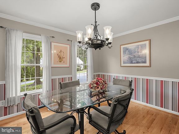 Introducing this spacious five-bedroom, three-and-one-half-bathroom home tucked away in the desirable Marriott Wood neighborhood, offering over 3,000 square feet of meticulously maintained living space across three levels. Situated on a 0.39-acre lot at the end of a quiet cul-de-sac, the home features a large rear yard backing to trees, creating a peaceful retreat for relaxation or entertaining. The bright and airy interior is enhanced by natural light, a neutral color palette, and thoughtful updates throughout. The foyer greets you with hardwood floors that extend through the entire main level, where crown moldings and chair railings add elegance to the front living room and formal dining room, perfect for hosting guests. The eat-in kitchen is a chef's dream, featuring granite countertops, ample cabinetry, a center island with pendant lighting, a pantry, and modern slate appliances. The adjacent breakfast nook is ideal for casual meals, with French doors leading to the rear deck, seamlessly connecting indoor and outdoor living. Unwind in the family room, centered around a cozy brick gas fireplace that adds warmth and charm. Completing the main level are a convenient half bathroom and a mudroom with access to the attached two-car garage. Upstairs, the primary bedroom suite offers a walk-in closet and a renovated en-suite bathroom with a luxurious frameless walk-in shower, soaking tub, and dual vanity with a granite countertop. The upper level also includes three additional bedrooms and a full hall bathroom with a tub-shower. Downstairs, the fully finished lower level offers versatility with a fifth bedroom, full bathroom, and a recreation room featuring sliding glass doors to the rear yard. The utility room, equipped with laundry, provides extra storage space. Outside, the expansive deck overlooks the serene yard and trees, while the paver stone patio with a charcoal grill is ideal for outdoor dining. A storage shed with electricity adds convenience for storing outdoor essentials. Located just off Liberty Road/Rt. 26, this home is just minutes away from a wide variety of shopping, dining, and entertainment options, along with outdoor activities at Liberty Reservoir. Recent updates include a gas range with a double oven, French doors, blinds, and more. The home is also wired for a generator (generator not included). Discover the perfect blend of sophistication and tranquility at 2203 Edenbrooke Court.