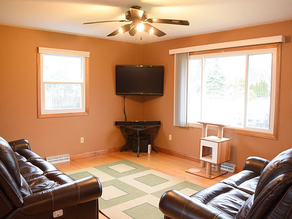 Well maintained ranch. Hardwood floors in living room. Large remodeled eat in kitchen with all appliances. Sliding glass door off master bedroom to patio and hot tub. Fenced yard-with fruit trees. Large professionally finished rec room with bar great for entertaining, plus a utility room with tons of storage. Oversized heated and vented 2.5 car garage plus a garden shed
