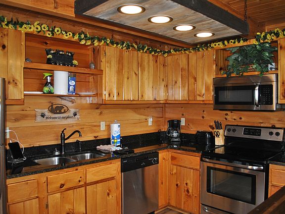 Enjoy the AMAZING views from this beautifully remodeled cabin with tons of amenities. New granite and flooring in kitchen and baths. Hot tub and sauna on deck with plenty of seating too. Theater room and extra bedroom in lower level. community pool too. Enjoy the fireplace from the living room or bedroom. This cabin has it all! Come see it today!