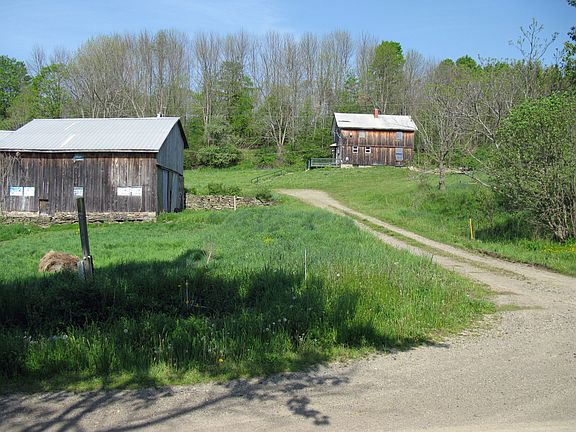 old style farm house construction: double plank outside walls, wide floor boards. unfinished dirt floor basement. Large deck. Drilled deep well, excellent water, septic system, landline, very good cell reception. There is a large 2 story barn about 55' x 34' suitable for horses or other livestock. There is a 5 acre pasture and a 7 acre hay field and a little bit of woods. I own the neighboring 340 acre farm and you may opt for more acreage. Currently the place is still part of my farm and I'll have it surveyed. I expect yearly taxes to be between $1000 and $2000. The barn was rebuilt in 1976 and the house remodelled the same year. All windows are double glazed. 2" rigid insulation was added on all outside walls and covered with 1" rough sawn boards. Open floor plan downstairs.