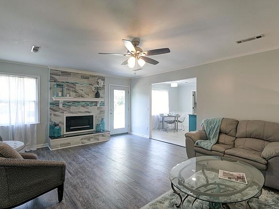 WOW! Granite in kitchen in this completely remodeled home. Beautiful kitchen with island, granite counter tops, designer tile back splash, beautiful tile flooring and all appliances including new refrigerator. Both bathrooms have new designer vanities, lighting and gorgeous custom tile showers. Foyer, kitchen, bathrooms and utility room have new tile flooring.Formal living, dining room, master bedroom and great room all have the new vinyl plank flooring. Great room has a fireplace, master bedroom has two closets and the utility room has a sink also. All new inside with lights, paint, granite, vanities, flooring and more.Two car garage, large fenced yard, large patio with fire pit, home warranty and more. Above ground pool. Located in Alice Drive Elementary & Alice Middle school location.