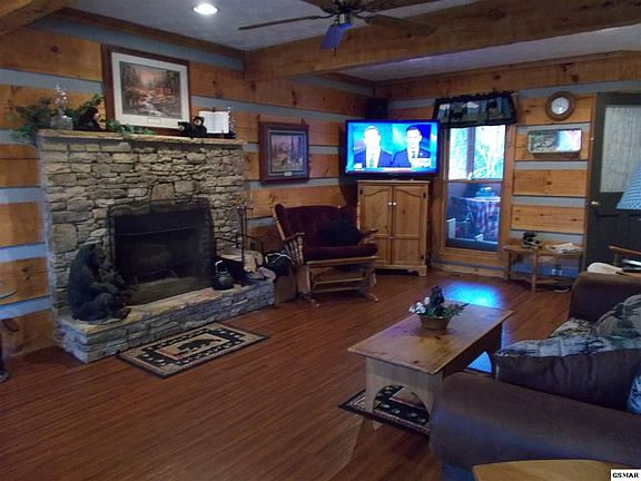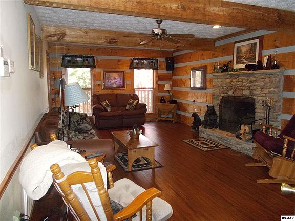 Wonderful log home in a beautiful setting! Currently a permanent residence but would also make a great overnight rental. Located a few miles from the Pigeon Forge Parkway with access to Sevierville via backroads. Fantastic location with no steep roads. Situated on a partially wooded lot for added privacy. Enter the home to a nice foyer with two closets. To your left is the great room and to the right is the main level master bedroom. In the great room you will find a stone, wood burning fireplace. Round the corner from the great room and step into the dedicated dining room. Across from the dining room is the kitchen with ample cabinets to store all your cookery. The master bedroom has an attached bath housing a jacuzzi tub. Upstairs you will discover the two additional good size bedrooms and bathroom. Sit and rock away your cares while you listen to the rain on the covered front porch or dine in the screened-in porch. Enjoy the crisp mountain air on the open deck leading to the backyard. New metal roof is less than 1 year old. Make this your permanent home or Smoky Mountain Vacation Get-a-way!