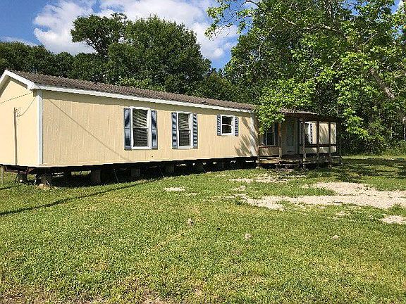 Tons of open space with 5+ acres of cleared high and dry land on a very private road. NO water from harvey. This home is immaculate clean, central air and hear, vents in ceiling, all appliances stay! 400 +ft deep well with super clean water, well house in back. Front and rear porches make this home great for relaxing and entertaining. Tons of cabinetry in this open concept kitchen. Seller willing to leave most furniture, storage container also an option. Call today for your showing. LCM ISD!!