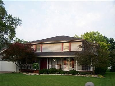 Immaculate and beautifully updated & maintained 2 story with brick paver driveway and sidewalk, wrap around front porch,2 x 6 construction, large family room with hardwood flooring,gas fireplace with sliding doors to the deck. Upgrades: 2010 new architectural shingled roof, new carpet and pads in all bedrooms, hallway and stairs, new Bruce hardwood flooring and new chandelier in dining room; 2009 new Kohler sink and Moen faucet in kitchen, New Payne 33 SEER Puron Central Air plus drywalled and epoxy floor in garage; 2008: remodeled main floor bath with granite vanity top and integrated sink, new designer faucet, mirror, ceiling fan/light, and towel bars; new kitchen floor, new foyer light fixture; 2007 remodeled laundry room with porcelain tile, oak laundry cabinets and light fixture; Bryant 90+ efficiency gas furnace with 10 year warranty; upgraded master bath faucets and towel bars; upgraded 2nd floor faucet and vanity lighting; new garage door springs; 2004 new hot water heater.