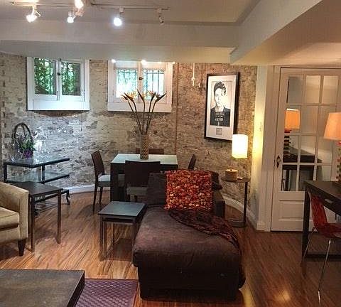 If you love history, this rarely available 1890's Embassy Row Kalorama -Dupont one- bedroom furnished ground floor apartment is move in ready. You have a private gated entrance into this 1890 completely renovated Apt. Fireplace, hardwood floors, exposed brick , built in book cases, modern kitchen, washer dryer, HD TV and much more in this historical jewel. Queen sized bed, L shaped sofa, working desk, dining alcove , track lighting, good closet space and more. Free Utilities, Premium Cable package,and Internet (total package valued at over $500) Walk to Metro, shops, museums, restaurants, health clubs, Georgetown, Dupont Circle, Adams Morgan, U St, Logan Circle. Close to bike rentals and amazing bike trails. Linens, cutlery, dishes, pots and pans included. Bring your suitcase and you are moved in. Available Sept 1st. For viewing please call 202 957 5942. all utilities, full cable and internet included