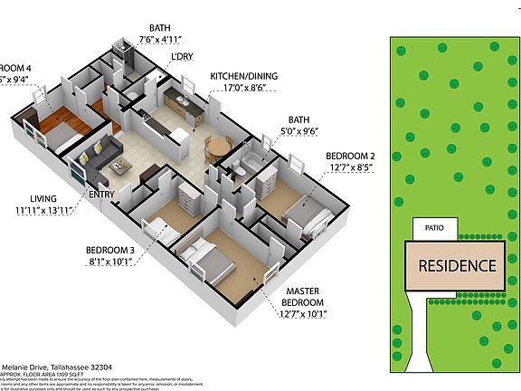 - Total interior livable area: 1,109 sqft