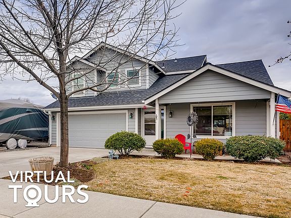 Move-in ready 3 bd / 2.5 ba home with a large backyard, flowing layout, and upstairs bonus room! Pass the nicely manicured landscaping and covered porch on your way into the home, where you're greeted by vaulted ceilings and natural light. Gather around the fireplace in the living room, and cook in the kitchen, equipped with a stainless steel French door fridge, wood cabinets, recessed lighting, tile flooring, and bar seating. There are two dining areas, perfect for both dinner parties and casual meals, and convenient laundry and powder rooms. When it's time to wind down, opt for the main floor primary suite, boasting a walk-in closet, dual sink vanity, and glass door shower/tub, or choose one of the upstairs bedrooms that share the full hallway bath. Use the bonus room as an office or game room, and enjoy the backyard retreat, complete with a cement patio, lawn, hot tub, and gardening areas along the privacy fence! Other features: Forced Air heating; Energy efficient appliances; Sprinkler system; Two car garage; RV parking. Located near parks/trails, shopping, and dining, with easy access to hwy 97 and Portland! Buyer should verify all information.Move-in ready 3 bd / 2.5 ba home with a large backyard, flowing layout, and upstairs bonus room! Pass the nicely manicured landscaping and covered porch on your way into the home, where you're greeted by vaulted ceilings and natural light. Gather around the fireplace in the living room, and cook in the kitchen, equipped with a stainless steel French door fridge, wood cabinets, recessed lighting, tile flooring, and bar seating. There are two dining areas, perfect for both dinner parties and casual meals, and convenient laundry and powder rooms. When it's time to wind down, opt for the main floor primary suite, boasting a walk-in closet, dual sink vanity, and glass door shower/tub, or choose one of the upstairs bedrooms that share the full hallway bath. Use the bonus room as an office or game room, and enjoy the backyard retreat, complete with a cement patio, lawn, hot tub, and gardening areas along the privacy fence! Other features: Forced Air heating; Energy efficient appliances; Sprinkler system; Two car garage; RV parking. Located near parks/trails, shopping, and dining, with easy access to hwy 97 and Portland! Buyer should verify all information.