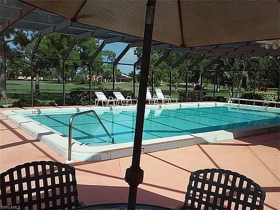 11th Fairway on Palmetto Pine Golf Course in Cape Coral. Great location - near Chiquita & Veterans. Beautiful condo in a friendly community on a private street. ASSESSMENTS PAID. Watch the golfers from your Large Master Suite and your spacious Living room/dining room. Corner unit - lots of windows. Screened-in Balcony. Private Garage with space for your Golf Cart & vehicle+. Over-sized screened-in solar-heated pool, enjoy a social gathering at the private clubhouse with kitchen, bar area & restrooms or use the clubhouse for your event. Plenty of parking, good reserves. Moneys allotted for all Buildings to be painted this summer. Walking distance to Palmetto Pine Country Club. THE ONLY GOLF COURSE CONDOS IN CAPE CORAL.