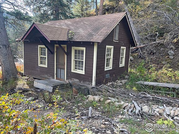 Diamond in the rough. A perfect long term Glamping opportunity. Rustic cabin & outhouse on picturesque property with 150 feet of river frontage. Large rocky forested hill behind cabin is adjacent to National Forest with views of back range. Although a legal residential lot, the odds of living here permanently are slim to expensive. The electrified cabin can be repaired but not enlarged. Currently the only legal access is to walk across the creek as the bridge washed away in the 2013 flood. It can be rebuilt, $1K-$100K. A new septic system is doubtful to expensive. Lots of hiking trails nearby. Easy access to Estes, Nederland, Lyons & Boulder. Call Agent to set showing. Seller will consider Owner Financing: Full price, 50% down, 10% interest, 1-3 year balloon note.