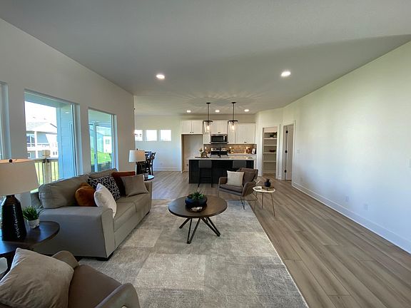 Come see this BRAND NEW 5 bedroom, 3 bathroom, home with 3 car garage in the beautiful Casa Bella Development! The main floor features an open floorplan with large windows that bring in lots of natural light, LVP flooring, granite counters, 3 bedrooms and 2 full bathrooms. The kitchen features a large island with eating bar, blanco composite sink with single stem kitchen faucet, and a walk in pantry. The master bedroom has a feature wall, a private bathroom with water closet, and a large walk in closet. The view out basement features a huge rec room with wet bar, 2 additional bedrooms and one full bathroom. The exterior features a covered composite deck, sprinkler system, and sod.
