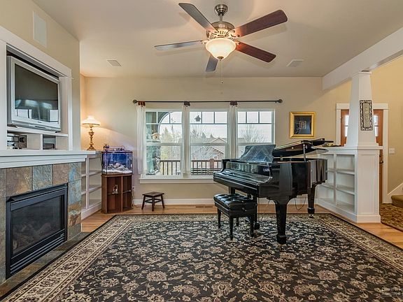 This customized Palmer-built home on a quiet cul-de-sac was loaded w/upgrades when built. Great room w/craftsman built-ins, hardwood flooring, gas fireplace & surround sound. The kitchen boasts upgraded backsplash, under-cabinet lighting & outlets, eating bar. Large master w/jetted tub, separate shower, walk-in closet, dual vanities. Bonus room w/wet bar & full bath, office nook, alley-access garage with 220V power, & views of Smith Rock, Powell Butte, and Ochoco Mtns! New exterior paint & landscaping.