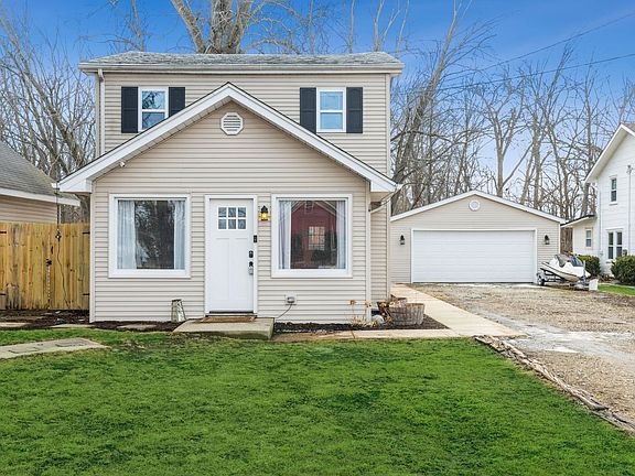 Absolutely Adorable, Updated Home across the street from the Fox River. Extra lot included with a 21'x21' Guest/Recreation Building all decked out for Summertime Fun. Two Car Garage. Home Features many updates in 2016 which included an updated Kitchen with Granite Countertops, Appliances, Wood Laminate Flooring, Bathrooms, Siding, Windows and much more. Nice size Living Room with Wood Laminate Flooring, Recessed Lighting along with Views of the River. Laundry is on the main floor with updated Water Softener System. Two nice size Bedrooms upstairs with a half bath. Out back recent additions include the Composite Decking off the Main House and a Brick Patio off the Recreation Building. Enjoy relaxing and soaking up the sun while entertaining your guest. The Recreation Building has a beautiful Bar and plenty of space for a table and couches. You have access to a pier across the street for $600 a season if you choose to use. This is not in the flood zone and is in a golf cart community. Come out and enjoy the fun! Very Secluded home at the end of the neighborhood but close enough to town, dining and shopping. You will not want to miss this one!!!
