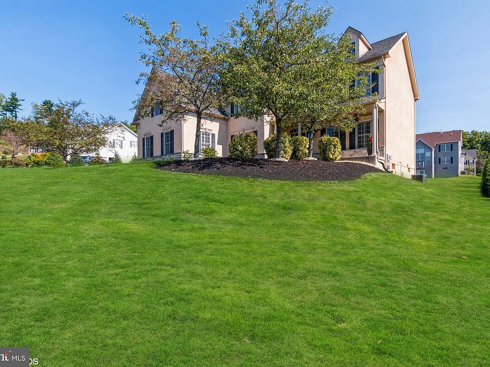 Beautiful colonial in Hilltown Ridge with incredible long distance views & lush landscaping. This lovely home is absolutely pristine and almost appears to be untouched. Freshly painted interior offers a completely neutral palate and has an abundance of moldings, numerous custom features, 2.5' bump out option, custom wood shutters on ALL windows, new floors on 1st floor, holiday light package, new heater/new air conditioner & new hot water heater. Charming front porch leads to a large 2 story foyer entry, private first floor office, 9' ceilings, large formal living room, large formal dining room, eat in kitchen with island, granite & stainless appliances (new refrigerator), dramatic 2 story family room with full wall of windows overlooking rear yard & 2 story deck, 2nd rear staircase from family room, absolutely darling custom laundry room with pocket door, multiple storage nooks, shelves & closets which lead to an over sized 3 car side entry garage that is literally clean as a whistle. Upstairs you will find a simply gorgeous, spacious & very comfortable master suite with sitting room, huge extra long walk in closet room, large master bathroom w/double sinks, full view glass shower, soaking tub and private toilet room. Three additional bedrooms offer spacious closets and ceiling fans. The enormous basement is a full daylight walk out with 9' ceilings & sliders that lead to the large rear yard all just waiting your finishing touches. This lovely home is truly immaculate & pride of ownership is apparent throughout.