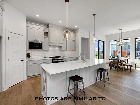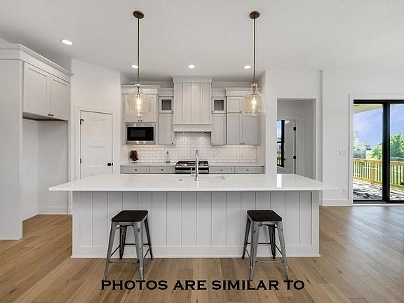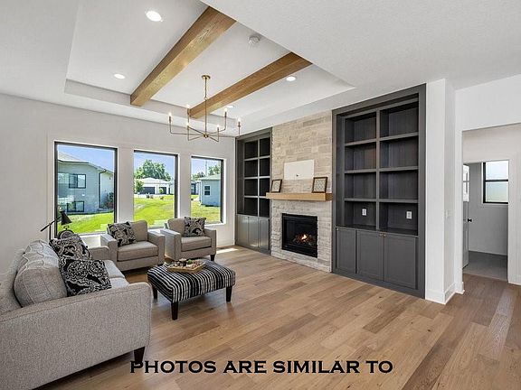 This is the house that will make your neighbors jealous! Curb appeal is on point with the fabulous front porch. Walking through the 8' front door you are taken back by the soaring 10' ceilings and hardwood flooring throughout the main. The fireplace is surrounded by vertical shiplap, barn beam mantle and custom made built-ins. The kitchen follows suit with an enormous 10' island, 42" cabinets with full crown, custom wood hood, gas range and large pantry. After a long day you can relax in your master bathroom free standing soaker tub or hang out in the walk-in tiled shower. Step into your bedroom to air dry next to the electric fireplace! 2 more bedrooms and a full bath finish off the main level. As if this all wasn't enough! The basement is finished with 9' ceilings, a beautiful walk behind wet bar with vertical shiplap, 2 bedrooms, full bath AND another electric fireplace! 12x15 covered patio finishes the lower level. Pictures are similar to. Please contact Realtor for exact finishes. All information obtained from seller and public records.