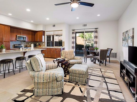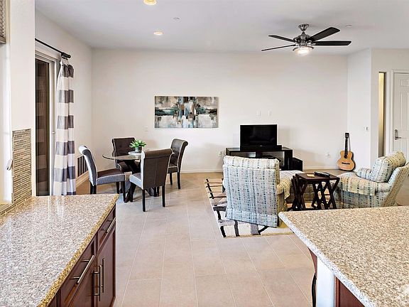 Great VALUE! Great Buy! Great LOCATION! Don't Miss This One! Impeccable Lower-Level Condo at World-Class 55 & Better Villa Portofino! This well-appointed 1 BD + Bonus Room/1.5 BA home offers 1,183 sq. ft. of well-designed living space. Interior features include: living area w/ large tile flooring & patio access, formal dining area, gourmet kitchen w/ stainless steel appliances, spacious master BD w/ en suite bathroom, bonus room (can be utilized a variety of ways), guest bathroom & a conveniently located laundry area. The patio offers privacy, plenty of shade & landscaped views. The value-rich community of Villa Portofino offers: a 30,000 sq. ft. clubhouse, where you'll enjoy every imaginable amenity: a sports bar, fitness center, 100-seat theater, yoga room, art studio, pool & spa, cantina, salon, formal dining room and a casual bistro. Plus, guard gated security, the HOA dues include all utilities, solar power (excl. electricity used), exterior maintenance, window cleaning & cable.