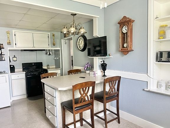Neat and tidy, move right in! Inviting enclosed front porch with den area, nice bright living room leads to eat-in kitchen with breakfast bar, main floor laundry to mud room next to office space/family room, 2 bedrooms, and a game/bar room that exits to the deck with an enclosed 3 season porch to a fenced backyard with large shed. basement is set up for a hobby room. Newer steel roof