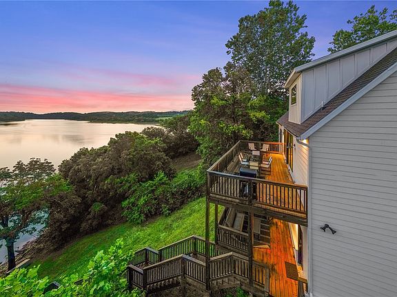 Escape to your dream lakefront retreat with this modern, fully-furnished home with private, covered boat dock on the serene shores of Beaver Lake. Nestled in a quiet cove, this turn-key property can be your personal lakefront oasis or provide lucrative rental income as a VRBO rental. Step inside to discover an open concept design that integrates the eat-in kitchen, dining area, and living room with a fireplace. Enjoy picturesque lake views from the main deck as well nearly every room in the house. The primary suite is on the main level. Upstairs, a second-story bedroom awaits, featuring a queen bed, four built-in bunk beds and a full bathroom. The basement level presents even more possibilities with a second living area, two additional bedrooms, and a full bath. Unwind in style on the second deck, complete with a soothing hot tub with a lake view. Currently an income producing VRBO rental. Showings will be set up through management company. Listing agent will have to confirm all showings and times will be limited.