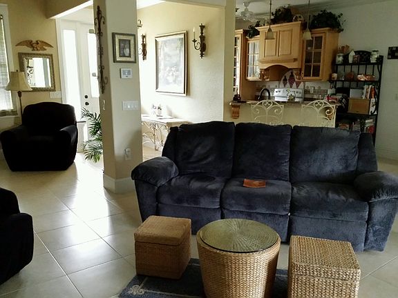 Beautiful 3 bedroom 2 bath home that is way better than most. This home features tons of upgrades and custom features you won't find on most new homes. You will love this quiet area that is still close to everything. Tiled front porch with swing - Tile throughout the whole home - Whole house back-up generator that runs on propane - Wood burning fireplace - French doors from Master bedroom and Living room to lanai - Alarm system & Security Cameras - High efficiency A/C & Heat pump in both the home and garage - All metal duct work. No fiberglass duct board - Insta Hot tank-less water heater - Poly Foam insulation applied to roof underside. Keeps attic cool. - Oversize garage with 8' door & electric screen - Double pane insulated windows with Shatter Guard glass treatment - Hurricane shutters - 9'10" ceilings - Granite Counter top in kitchen - Marble vanity tops in both bathrooms - Crown molding - Beautiful tiled and screened lanai - Mulberry trees in back yard - Not in a Flood Zone (no flood insurance required).