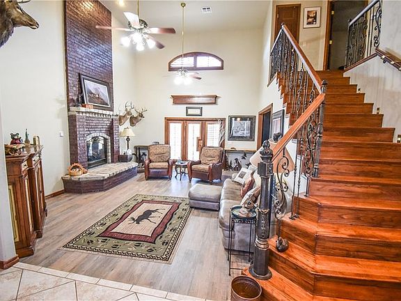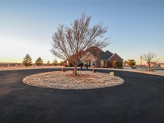 You've got to see this GORGEOUS 3 bedroom, 2 1/2 bath home on 17.5 acres with a 40x80 shop/barn that has approximately 6,000 square feet! This home sits on top of a hill just outside of Clinton, OK, and features a beautiful open floor plan with soaring ceilings. The primary suite is on the lower level, and boasts a formal dining, new LVP flooring in the last year, primary closet also updated with built-ins, and the ductwork in the floors has also been recently sealed. The Kitchen has beautiful granite countertops, an eat-in island, and lighting over and under the cabinets. Asphalt in circle drive and other areas has also just been sealed, and in some areas replaced. Just off the kitchen, there is a nice-sized basement/cellar for additional storage. The property not only has a HUGE shop, but also several silos, a corral, lean-to's and many extras for a ranch property! Come see this incredible property! Livestock welcome!