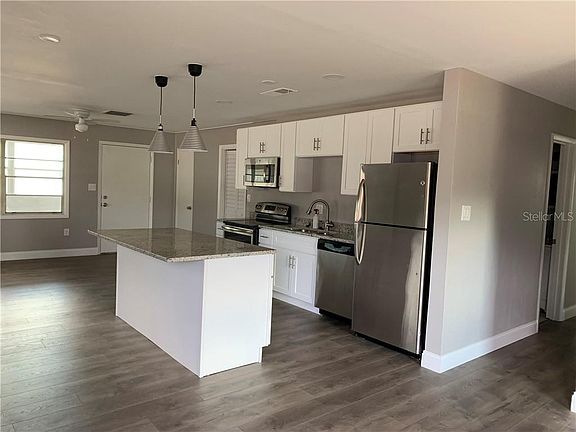 Stunning fully renovated 3 bedrooms, 2 bathrooms single-family house with a bonus/family room in a quiet and friendly neighborhood in Winter Haven. This gorgeous home features a modern open concept eat-in kitchen, incorporating the living room on one side and a large dining room on the other. The kitchen area has granite countertops, big island, new soft-close cabinets and GE stainless-steel appliances including dishwasher. The dining room has a direct view of the spacious family room. The family room has a front door and a back door leading out to a large covered back porch. Beautiful laminate wood floors throughout the house with large luxury baseboards. Brand new A/C and water heater. Nice big back yard with mature trees and bonus large storage shed.