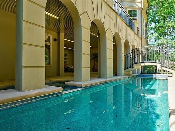 BIG, BOLD AND BEAUTIFUL!! This extraordinary home was thoughtfully and imaginatively designed and built by the original builder as his personal residence, and provides plenty of bells & whistles including one-of-kind architectural features, INDOOR BASKETBALL HALF COURT, and wonderfully open floor plan. Gorgeous double doors open to modern interior and colors. Handsome panelled study with fireplace. Elegant dining room with truly stunning chandelier adjacent to butler's pantry. Over-sized great room with beautiful arched window looking thru arched openings to covered deck and the golf course beyond. Gourmet kitchen has been totally renovated with hi-end stainless, glass subway tile backsplash, and multiple sitting areas PLUS a huge walk-in pantry. Breakfast room with magnificent high octagonal ceiling adds splendor. Huge keeping room with two story stone fireplace. The master suite is palatial with TOTALLY renovated master bathroom and double-sized closet. Upstairs is a loft area plus 4 enormous bedroom suites with walk-in closets and en-suite bathrooms each with its own unique ceiling. The terrace level is AWESOME with the indoor basketball half court, renovated entertaining bar, theatre room, billiards room, steam sauna and much more! Sparkling lap pool with spa and gorgeous grounds complete the PERFECTION. Plus, there is a 3-car garage and a separate golf cart garage!! PRICED BELOW RECENT APPRAISAL.