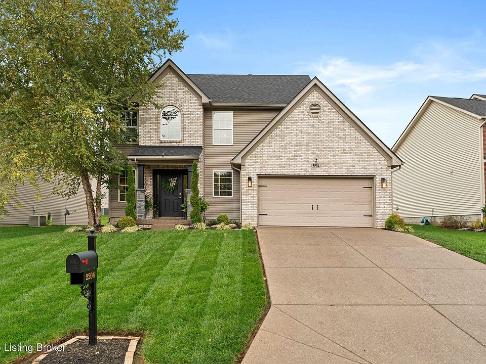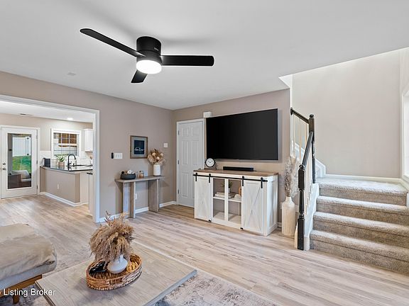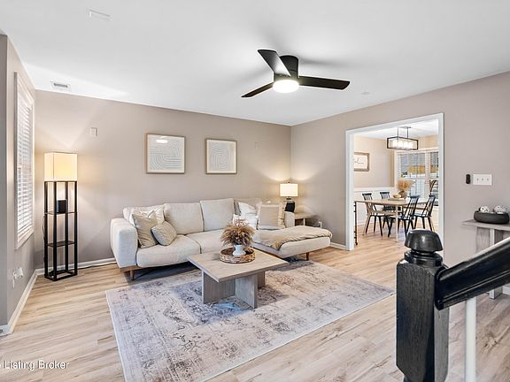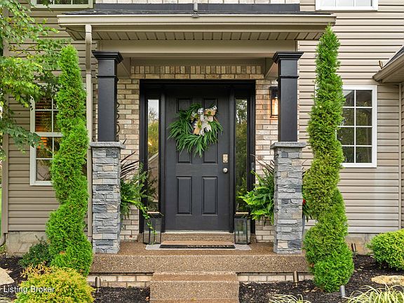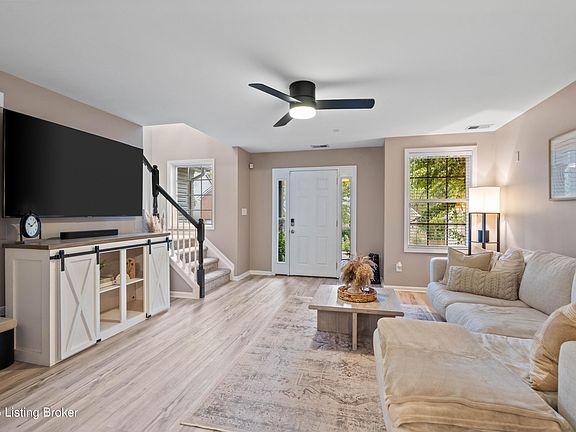 Beautifully updated home in desirable Flat Rock Ridge! Located on a quiet cul-de-sac across from Long Run Park Golf Course, this stunning 3-bedroom, 2.5-bath home is truly move-in ready with tons of updates and really shows like a new model home. The exterior features a beautifully manicured yard, covered rear porch with can lighting, fire pit area, and a fully fenced backyard — perfect for relaxing or entertaining. Inside, you'll find fresh paint throughout, new flooring, updated light fixtures, faucets and ceiling fans, and an upgraded kitchen with granite countertops, a stylish tiled backsplash and newer modern styled refrigerator with two types of ice. First floor laundry with washer and dryer that remain. Bathrooms have been tastefully remodeled with updates as well. The large Primary bedroom offers plenty of space and comfort with vaulted ceiling, attached primary bath with double vanity, shower, tub and walk-in closet. Living room wired for surround sound. Vivid alarm system remains. Roof replaced 2024, windows tinted. Additional highlights include a garage with a newly insulated door, added mini-split heat and air for year round climate control in garage. Immaculate and extremely well cared for, this home is a perfect 10! Close to Beckley Creek Park, Polo Fields Golf course, new grocery, Louisville Loop and outlet shops of the Bluegrass and easy access to all that Middletown has to offer.