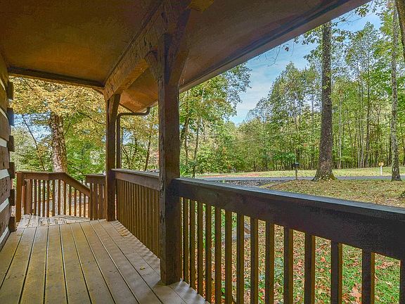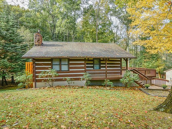 Delightful Log Home nestled in a very desirable area: private wooded lot with a creek, located just minutes to downtown Johnson City. The main level consists of two bedrooms and one bath, kitchen, and an open living room with wood burning fireplace. The basement was just recently finished to include two more bedrooms/ offices, a den, full bath and laundry/ mud room. Both rooms have walk in closets. Den has exterior access to the backyard and the mud room opens to the newly constructed two car carport. Other amenities include ample parking, laundry option on main level or basement, large yard with fire pit area, new microwave, new side deck, updated plumbing with pex tubing, roof and hvac less than 10 years old. Buyer/Buyer's agent to verify all information. *Yard Barn does not convey but could be negotiated.