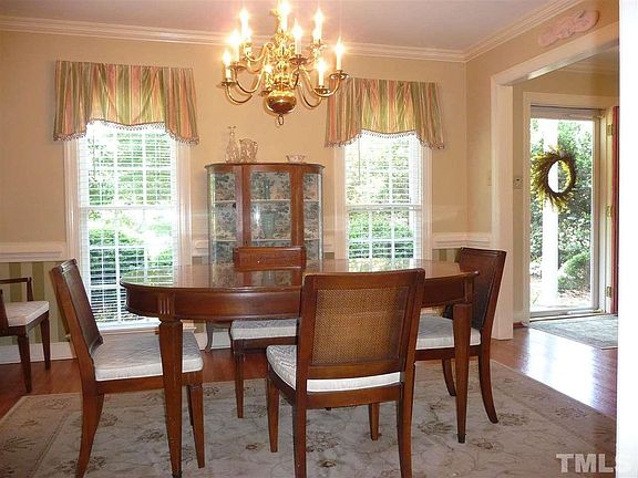 Lovely Stonehenge home in cul de sac lot. Walking distance to Seven Oaks Pool & Tennis Club. Front to back liv.room w/masonry frpl. and picture window overlooking back yard. Master suite + 2 bdrms in second floor. Spacious 3rd floor bonus/rec.room/ teenager's room. Lovely private yard with private deck, patio w/pavers + fire pit in the back. Lots of space to accommodate a families w/children of different ages. Only minutes to shopping centers, easy access to 440 , 540, RTP & RDU. 1 Yr. Home Warranty