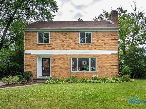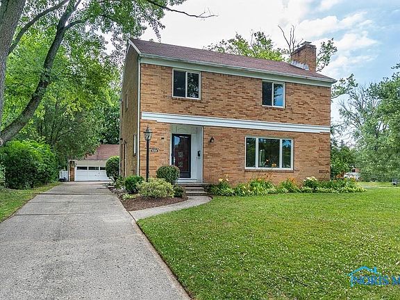 Light and Bright Brick 2-STY w/Marvin windows maintained and cared for. Welcoming Entry flows into coved ceiling living and dining rooms w/oak floors. LR w/wood burning FP. Den/Office on main level overlooks private backyard. Spacious kitchen w/lg. island seating 5 comfortably, updated appliances and storage. Master Suite incl. bath and balcony. 2+ Bedrooms up w/ tiled full bath. Finished lower level w/built ins, fully waterproofed. Lg. corner lot. Great neighborhood! Ottawa Hills #1 Jr/Sr High School in Ohio(U.S. News & World Report). Close to UT, Wildwood, Costco/Westgate and Expressway.
