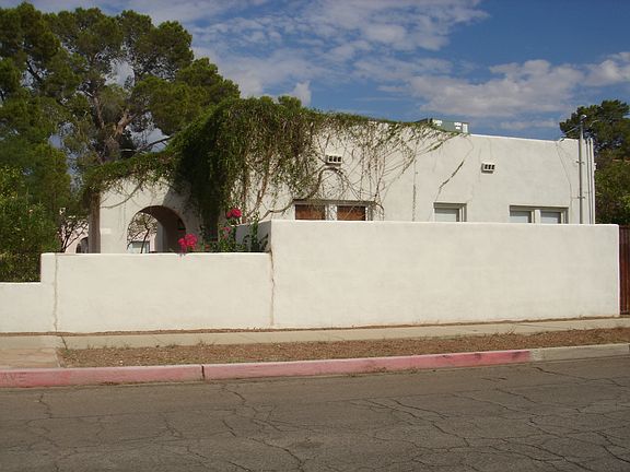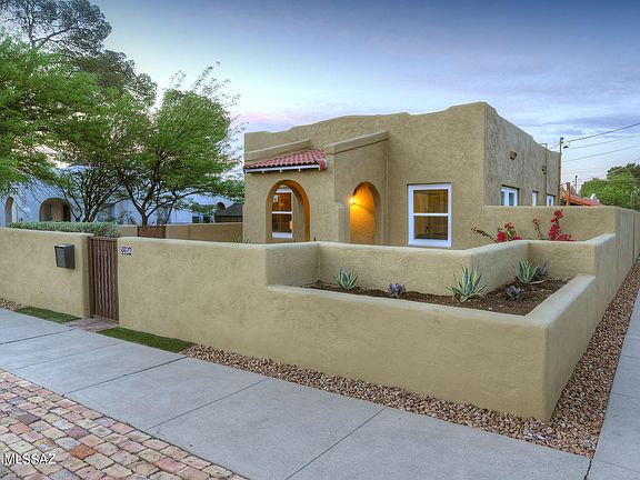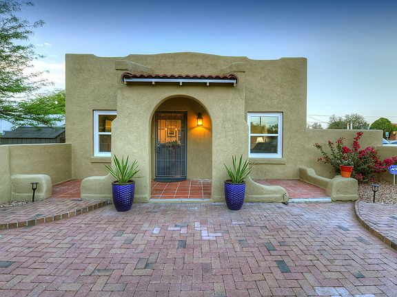 * Sam Hughes Spanish/Moorish Bungalow plus Studio just steps from UArizona. The perfectly appointed 758 sq foot home Built in 1926, 2 bed 1 bathroom home & fully remodeled. Great room floor plan w/fireplace adjoins beautiful cooks kitchen w/new quartz counter tops, new SS appliances, tons of storage, pendant lights over breakfast bar. Recessed lighting,, restored wood floors, freshly painted interior, new up-down blinds, new bathroom w/ soaking tub, new cabinetry, new dual pane windows throughout, Roof under warranty & more! 2 Cozy bedrooms. Front courtyard entry & backyard has brick pavers, cobalt blue Sail Shade, walled & private. Plus a separate guest studio w/brick floors, clerestory windows, kitchenette, full bathroom. Separate storage & off street parking!