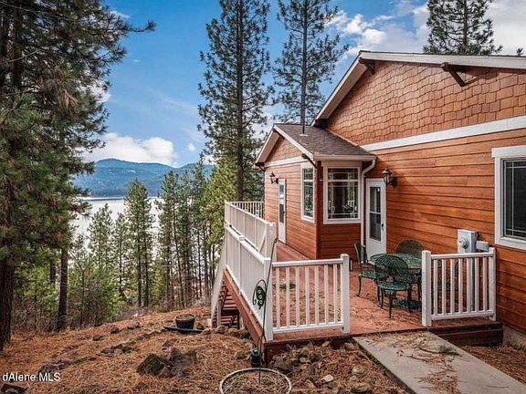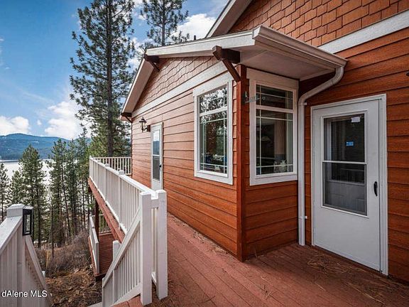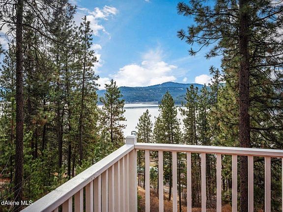 Live in the treetops with a view of Lake Coeur d'Alene in this secondary water front home!! Includes empty lot next door *Parcel #015800010050* AND boat dock/slip space!! This home is clean and move in ready. Lots of windows for all around views. Main floor has open living room, dinning room and kitchen. As well as ensuite bedroom and bathroom with double sink vanity. Sliding glass door leads out to the large upper deck. Enjoy the peace with sun, trees and lake views. Lower level has a second living room w/ large slider that leads to the lower, covered deck. 2 bedrooms (one is currently being used as an office), bathroom and a laundry area complete the downstairs. Both decks accessible from outside as well. Vacant land has been perc tested. Vacant lot size of .34 is included in total acres