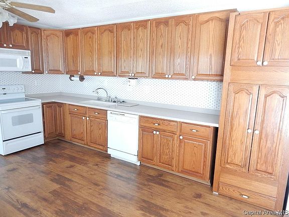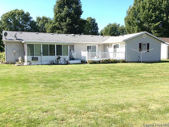 Ranch home near Lake Taylorville. 1762 SF, 4 bed/2bath, heated sun room, 25'8 X 14 kitchen! Lots of Schrock Cabinets, Corian counters, maintenance free deck is accessible from kitchen, sunroom and master bedrm. 2+ car garage. Lots of room to play and entertain in backyard. Storage shed stays
