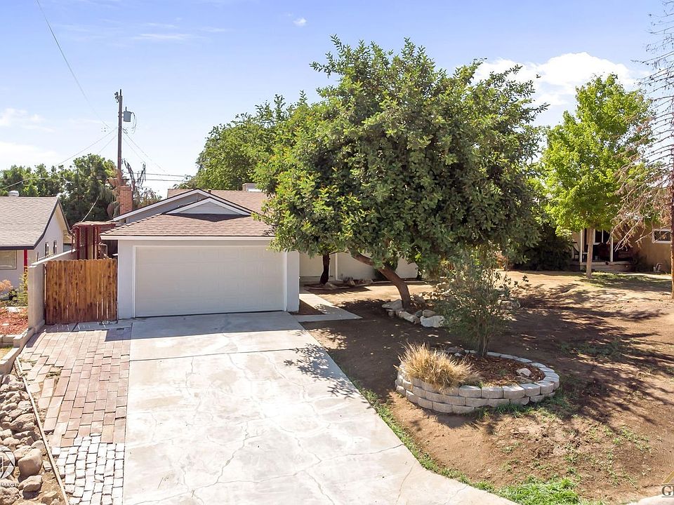 You will adore this North-East Bakersfield home! This is the one you have been looking for! This 3 bedroom, 1.5 bathroom home has a wonderful open floor-plan that is perfect for any family. The stunning kitchen features granite counter-tops, tile back-splash, and newer white cabinetry. The home has a newer composition tile roof and central AC and heating (approx. 8 years old per previous owner), and an updated electrical panel! This beautiful home has all new upgraded vinyl plank water-resistant flooring , brand new carpet, paint, baseboards, garage door, ceiling fans and light fixtures! The backyard is tranquil and private with block-wall fencing all the way around and a covered patio. This home has an attached 2 car garage with a new garage door and washer/dryer hook-ups. This home is located in a very nice, family neighborhood and in good school districts - Hort Elementary, Walter Stiern Jr. High and Foothill High School. Come and see this wonderful home today before it is sold!!
